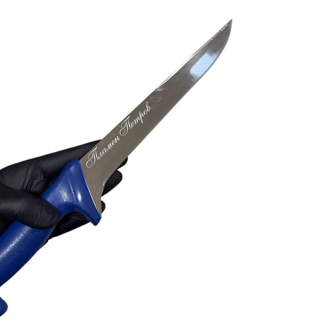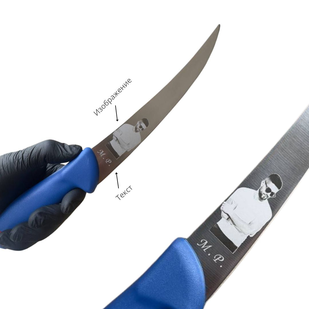Изглежда отлично при гравиране върху ножове с по-груба или тактическа визия. -
