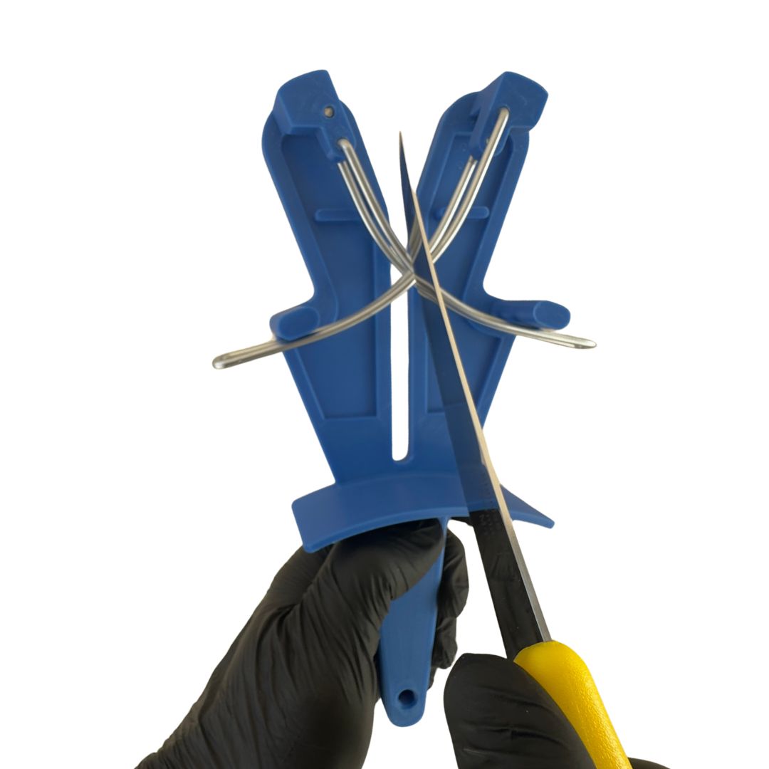 Просто прокарвате ножа през водачите – без сложни настройки и без риск от грешки.