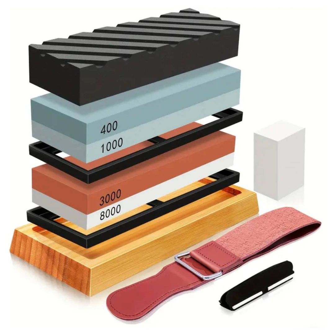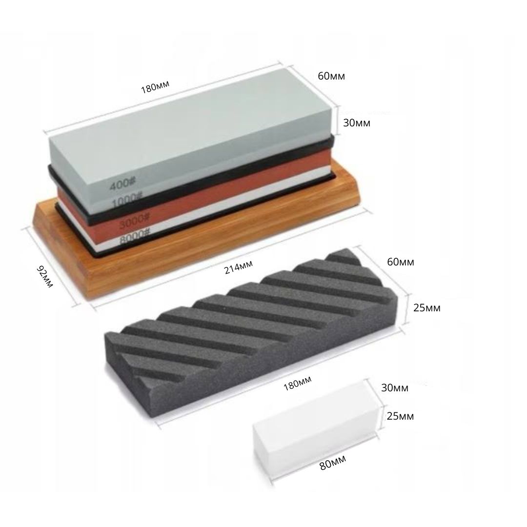 - 2 броя водни заточващи камъка с 4 различни грапавини (#400, #1000, #3000, #8000)