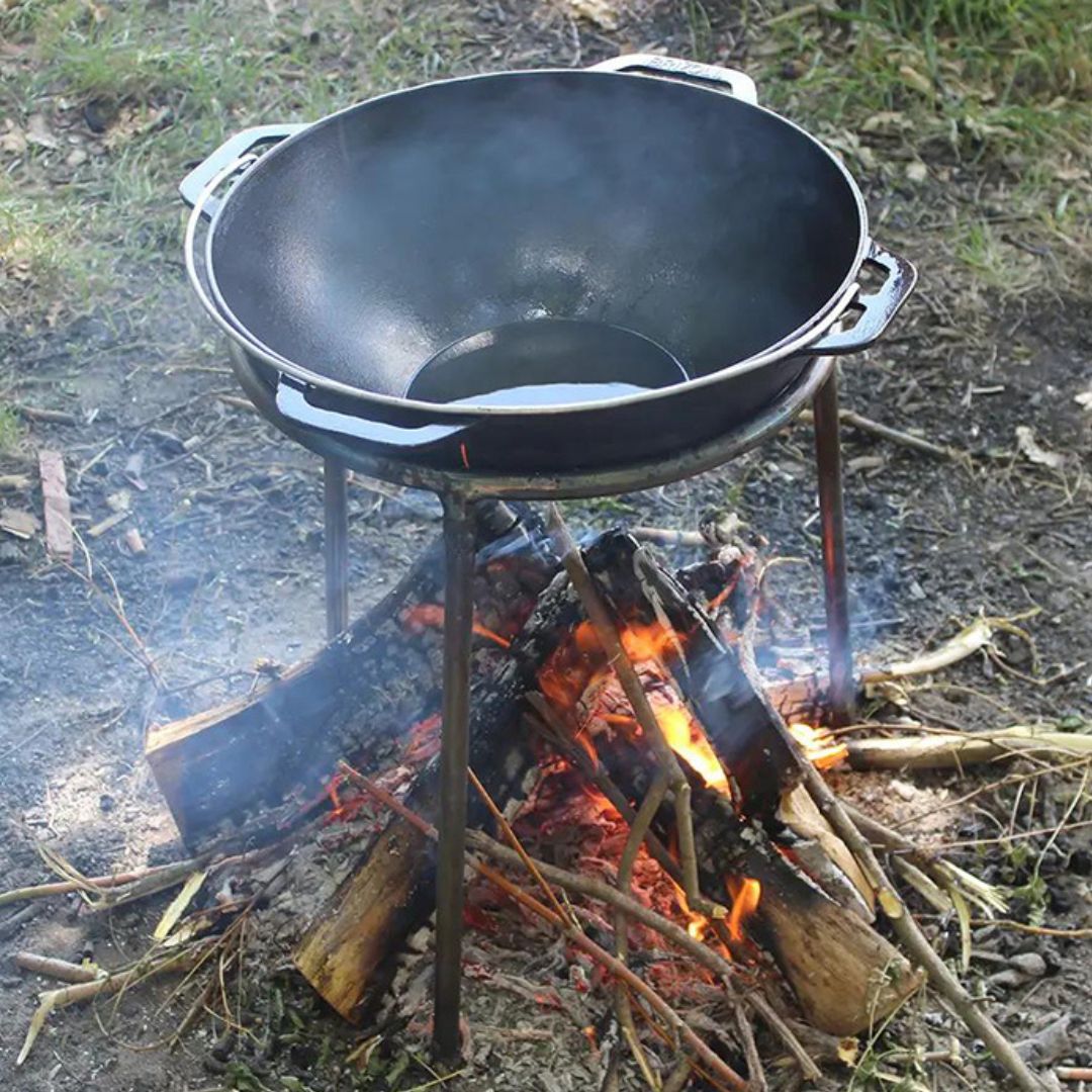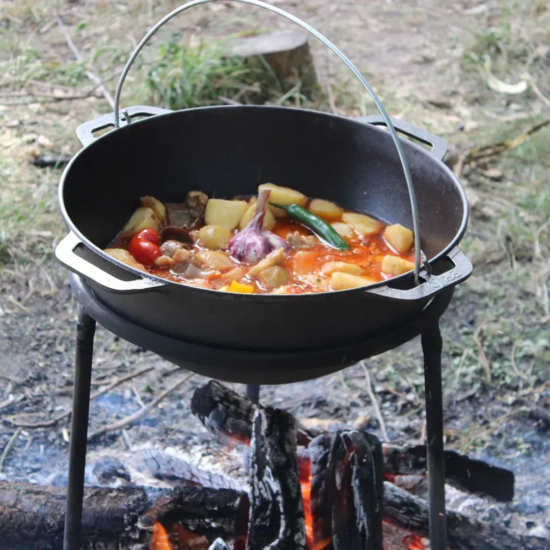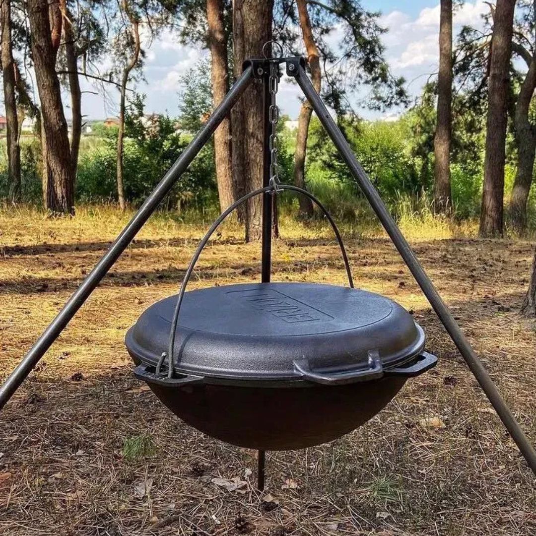 Чугунен казан с чугунен грил капак-тиган и дръжка. Неемайлиран, омаслен.